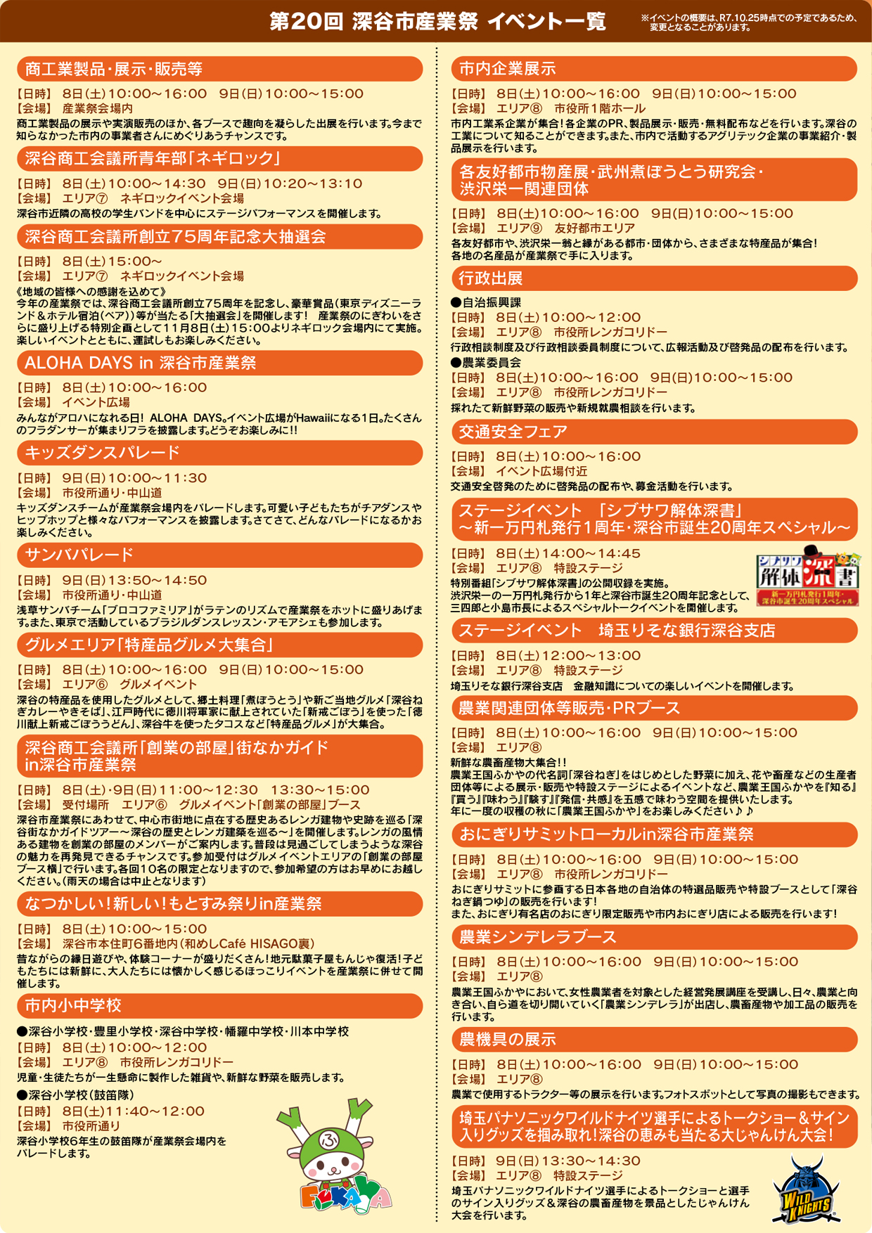 食べる・学ぶ・参加する!楽しいイベント盛りだくさんの2日間!商工業製品、新鮮な野菜や畜産物、花や植木などなど深谷産の魅力的な“イイモノ”が今年も大集合!!